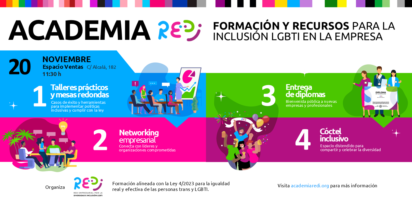 La Academia REDI es la jornada formativa pionera en nuestro país impulsada por la Red Empresarial por la Diversidad e Inclusión LGBTI (REDI). Desde su