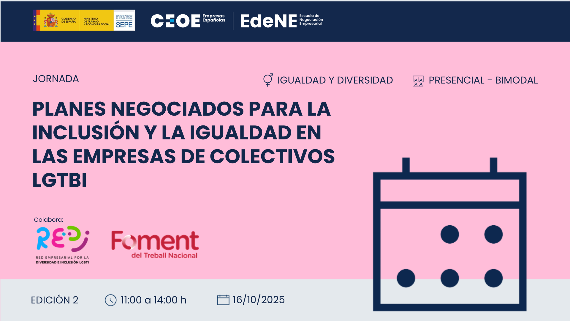 La “Jornada sobre Planes Negociados para la Inclusión LGBTI en las Empresas”, organizada por la Escuela de Negociación Empresarial EdeNE de CEOE, se celebrará el